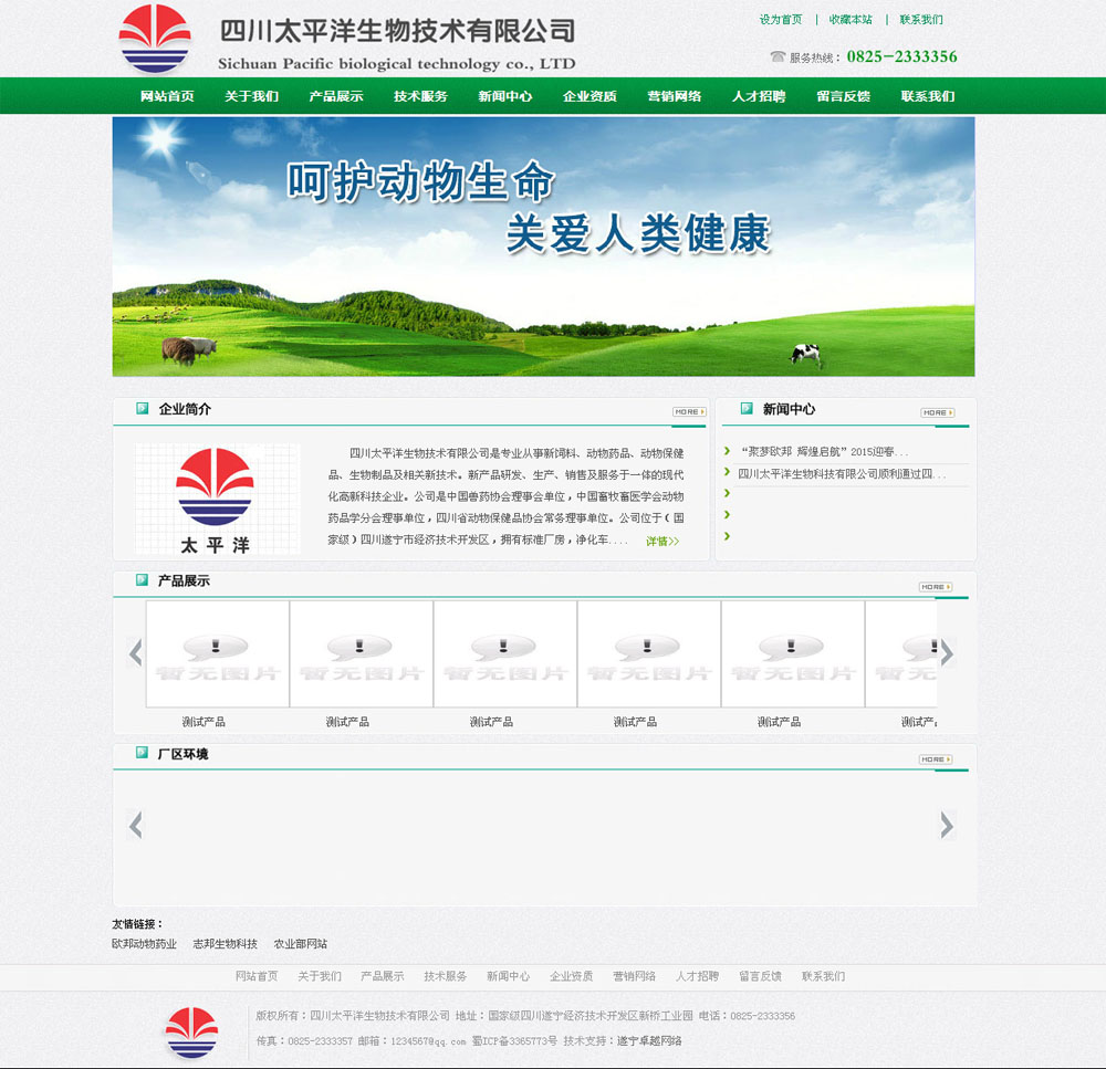 摘要:四川太平洋生物技術(shù)有限公司是專(zhuān)業(yè)從事新飼料、動(dòng)物藥品、動(dòng)物保健品、生物制品及相關(guān)新技術(shù)。新產(chǎn)品研發(fā)、生產(chǎn)、銷(xiāo)售及服務(wù)于一體的現代化高新科技企業(yè)。公司是中國獸藥協(xié)會(huì )理事會(huì )單位,中國畜牧畜醫學(xué)會(huì )動(dòng)物藥品學(xué)分會(huì )理事單位,四川省動(dòng)物保健品協(xié)會(huì )常務(wù)理事單位。公司位于(國家級)四川遂寧市經(jīng)濟技術(shù)開(kāi)發(fā)區,擁有標準廠(chǎng)房,凈化車(chē)間、質(zhì)檢室、無(wú)菌室、動(dòng)物實(shí)驗室、辦公大樓和完善的質(zhì)量管理體系。公司占地面積30000余平方米,現有職工200多人,其中大專(zhuān)以上學(xué)歷等技術(shù)人才52人。公司由中國農業(yè)大學(xué)、四川農業(yè)大學(xué)、西南民族大學(xué)等高校提供技術(shù)支撐,公司擁有一流的研發(fā)隊....